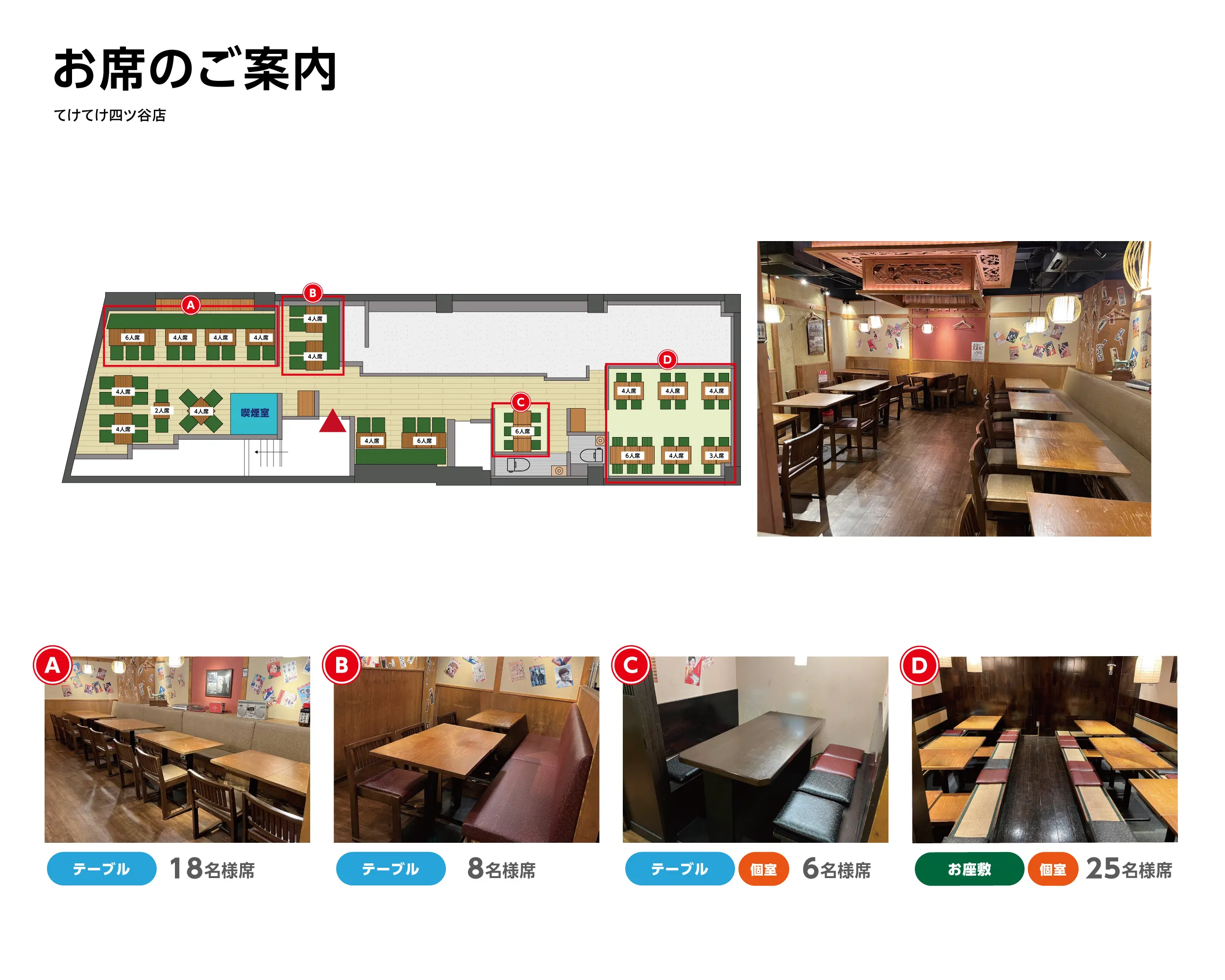 カウンター席テーブル席ボックス席個室半個室座敷