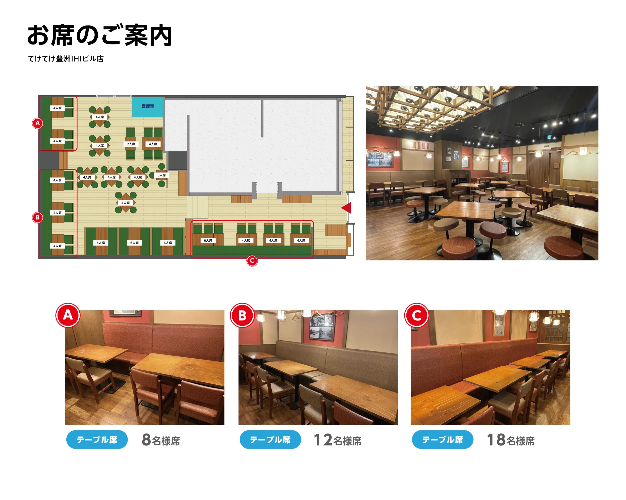 カウンター席テーブル席ボックス席個室半個室座敷